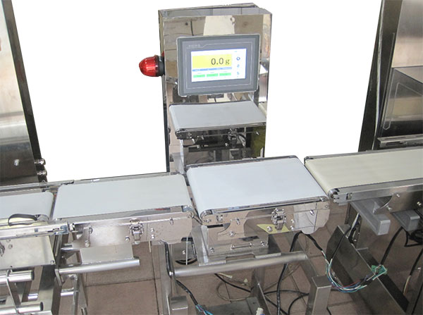 對(duì)小包裝物進(jìn)行重量復(fù)檢,超出誤差的由氣缸自動(dòng)剔除,可以滿足1000袋/小時(shí)的產(chǎn)能。